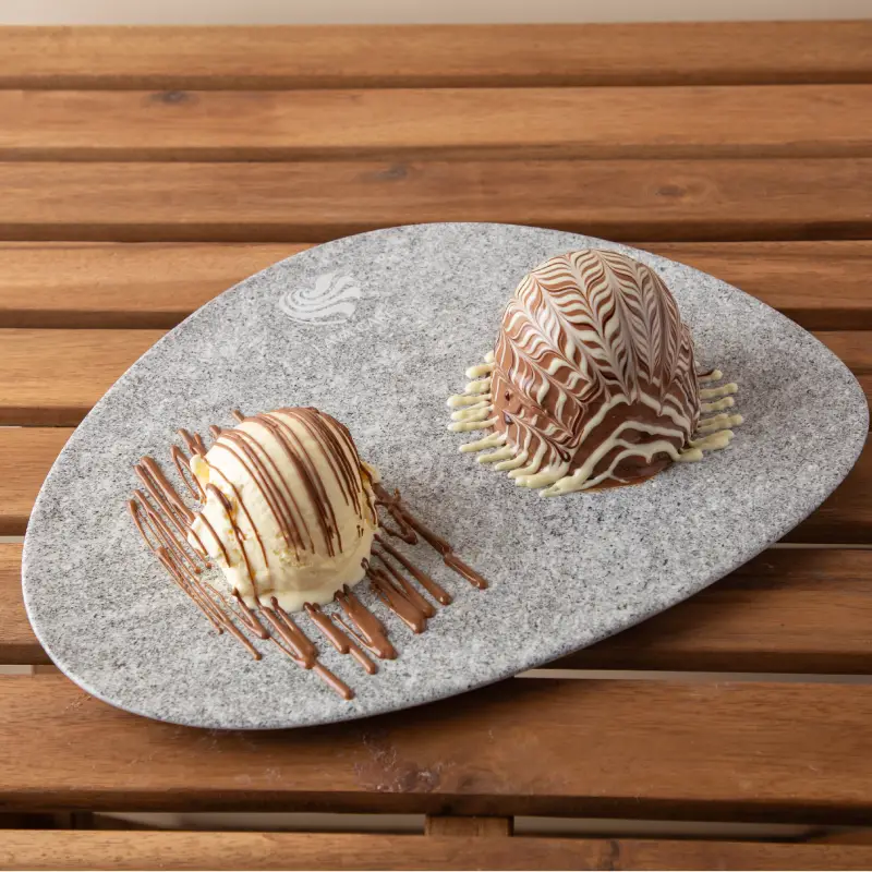 The Small Molten Original with Ice Cream pairs bite-sized molten chocolate treats with a scoop of creamy ice cream, creating a perfect warm-and-cold contrast.